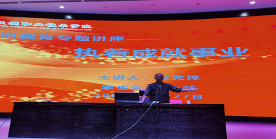 10月27日下午,学院邀请黔南州农业科学院研究所高级农艺师、黔南州州管专家徐先捍老先生到我院学术报告厅举办“执着成就事业”思想政治教育专题讲座。学院2020级部分高职新生到会聆听讲座,学院党委书记罗俊出席并讲话。