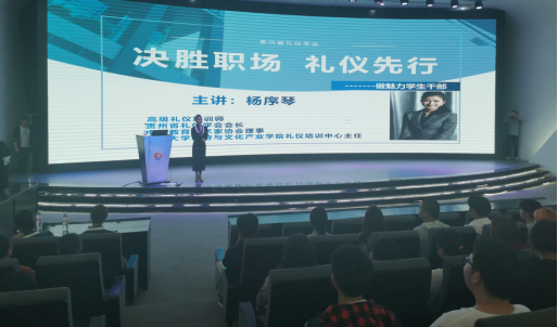 为更好的帮助毕业生在就业、创业方面走好人生的第一步,以习近平新时代中国特色社会主义思想为指引,坚持把立德树人作为根本任务,喜迎建党100周年,2021年4月1日学院特邀请到国家高级礼仪培训师、贵州礼仪学会会长、中国教育艺术家协会理事、贵州大学旅游与文化产业学院礼仪培训中心主任杨序琴教授在学术报告厅为同学作“决胜职场,礼仪先行”专题讲座。本次讲座主要介绍了礼仪的概述、礼仪内涵、礼仪的分类;主要从日常礼仪、商务礼仪、政务礼仪、仪容礼仪、仪态礼仪等方面做了详细的讲解。