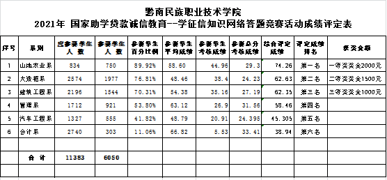 “珍爱个人征信 开启美好幸福人生”诚信教育主题的“学征信知识网络答题竞赛活动”成绩评定情况: