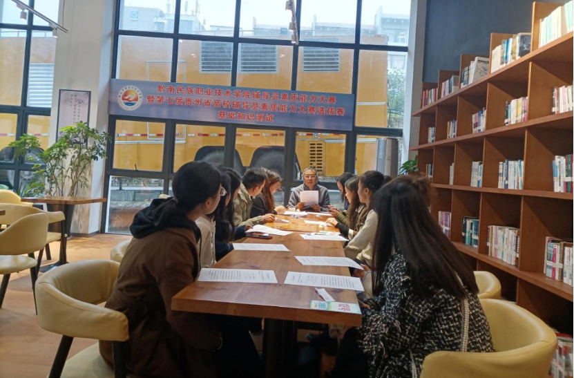 2021年10月14日、15日,第二届辅导员素质能力大赛。14日早上,来自6个系的12名辅导员在知行楼图书室进行本次笔赛的第一个环节基础知识考试。基础知识测试采用闭卷作答方式进行,重点考察辅导员的理论素养和业务知识。