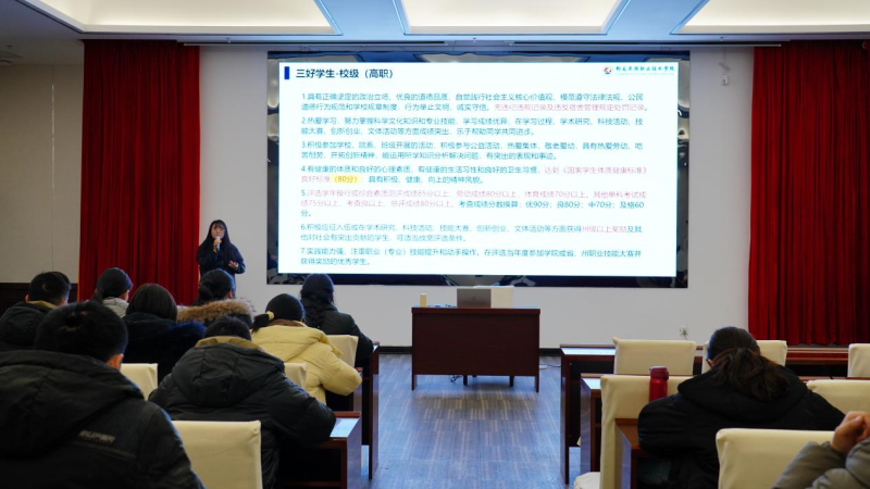为深入贯彻落实党的教育方针,进一步加强我校辅导员队伍的专业化建设,提升其思想政治素养和综合业务能力,助力辅导员快速适应岗位需求,增强职业认同感与归属感。我院于2025年2月22日上午,在知行楼六楼道德讲堂举办以“淬炼师者匠心,深耕育人沃土”为主题的2025年春季学期专职辅导员素质能力提升培训班开班仪式。学院党委副书记韦永革、党委委员副院长张金华、党委委员宣传(统战)部学生工作部部长高扬、各系部党总支书记出席开班仪式,各系部学管主任和全体专职辅导员参加培训。