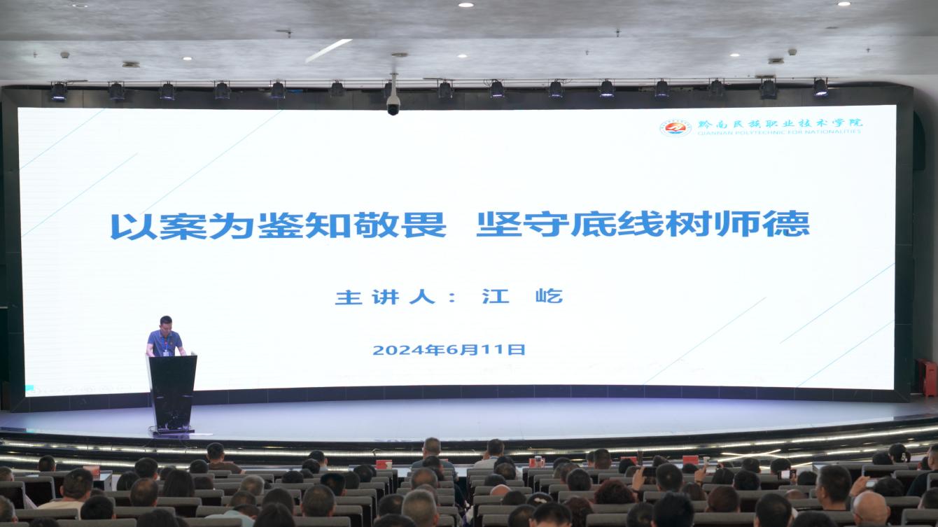 为深入贯彻二十届中央纪委三次全会、十三届省纪委三次全会、十二届州纪委四次全会精神,落实党纪学习教育期间开展警示教育的有关要求。6月11日,学院在思齐厅召开2024年警示教育大会,党委书记罗俊主持并讲话,学院领导班子成员,各系、各部门负责同志及全体教职工参加。
