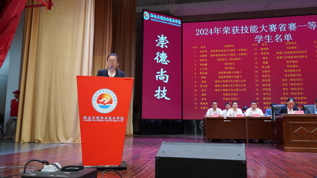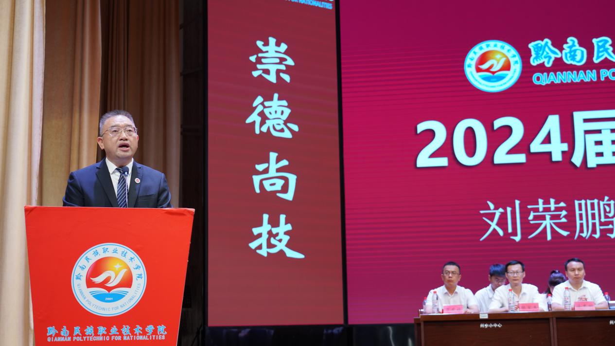 罗俊书记在毕业典礼上向同学们表达了深切的期望,他强调了专业技能的重要性,倡导大家要将所学知识和技能运用到实际生活中,保持勤奋和坚韧的精神,不断提升自己的专业能力,做到诚实守信,将学问转化为实践的力量。大家要谨记“崇德尚技 知行合一”,将知识和技能运用到今后的学习、工作、生活中,坚守吃苦耐劳的精神,练就精湛的本领,明理诚信,学以致用。