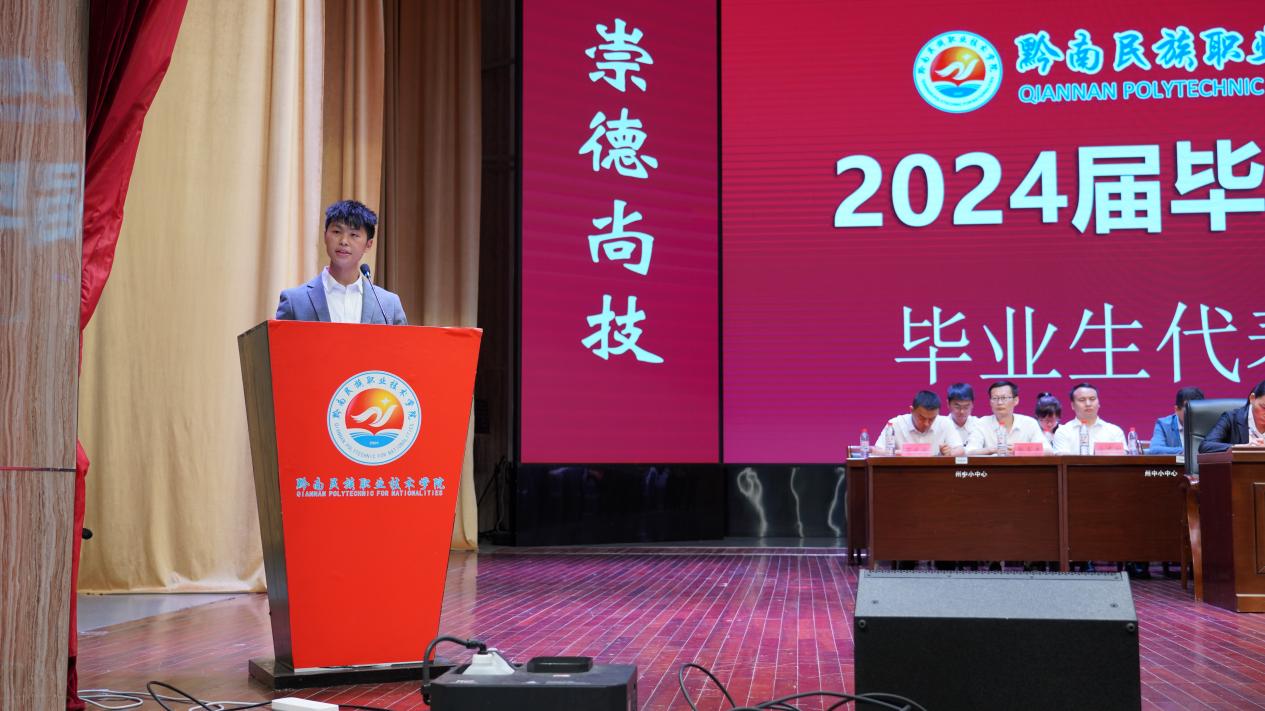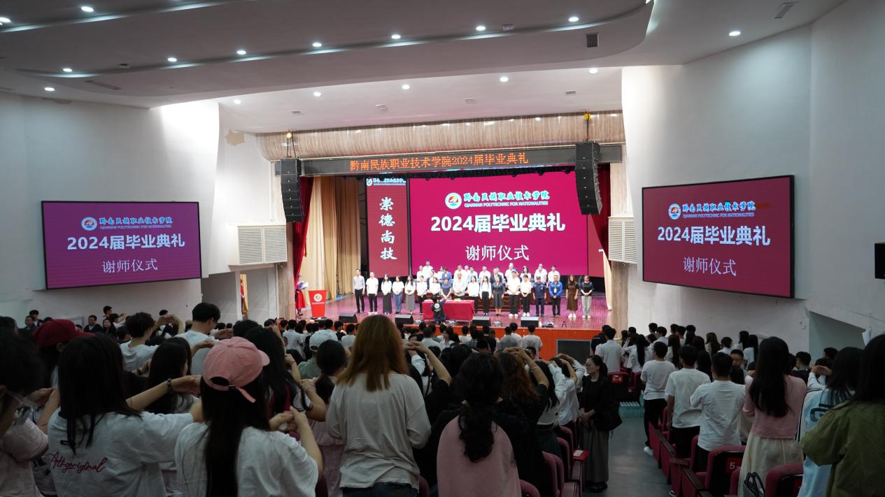 最后,全体师生齐唱《黔南职院在我心上》,用歌声表达对同学们的祝福。2024届毕业典礼圆满结束。