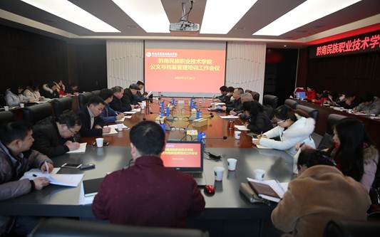 史黔匀主任在讲话中强调,目前学院处于创优关键期,为使各项工作紧跟创优步伐,学院制定了《黔南民族职业技术学院公文管理规定》,院行政办公室具体实施,希望大家认真学习领会,工作中严格执行公文管理有关规定,推进学院公文与档案管理工作精细化、制度化、规范化和科学化。