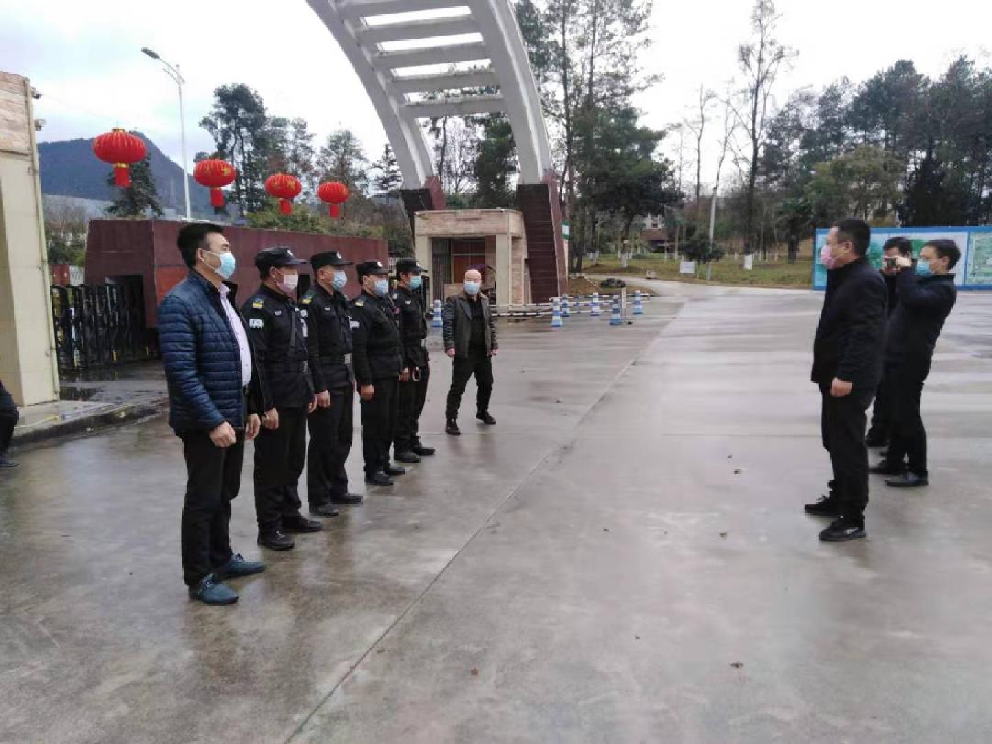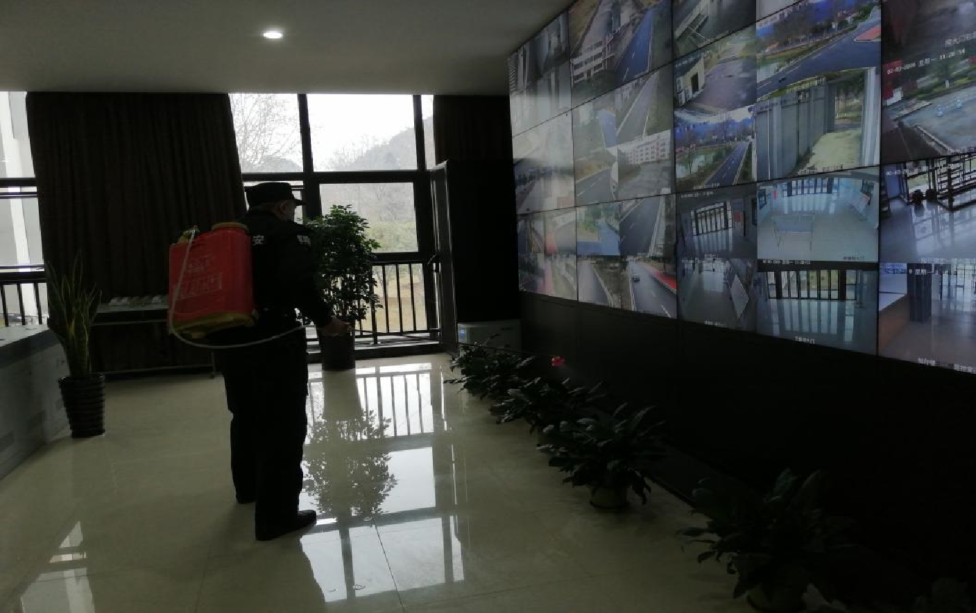 为切实做好我院新型冠状病毒感染的肺炎疫情防控工作,确保寒假期间值班、加班教职员工生命安全和身体健康,2月3日上午,院机关第一支部支委成员面对疫情风险,到校园配合学院行政值班领导对当班安保人员进行疫情防控工作部署。另外对安保人员进行具体的消毒杀菌培训。支委成员覃国庆、林俊还指导4名保安人员对校门值班室及周边、监控中心等重点部位进行了消毒杀菌工作。