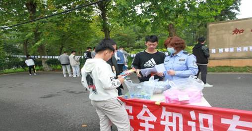 在国庆、中秋两节到来之际,为进一步提高师生安全防范意识、增强防范技能,9月25日,保卫处以消防安全、禁毒防艾、厉行节约、食品安全、交通安全、疫情防控、防范网络金融诈骗、防溺水为宣传主题,采用发放宣传小手册、有奖问答、专题讲座等形式,举行了一次立体化的宣传教育活动。