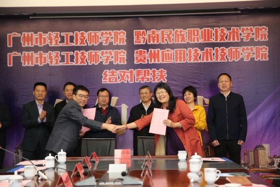 广州市轻工技师学院与贵州应用技术技师学院结对帮扶合作协议签约暨“南粤家政”人才培养基地授牌仪式也于今日在我院举行。