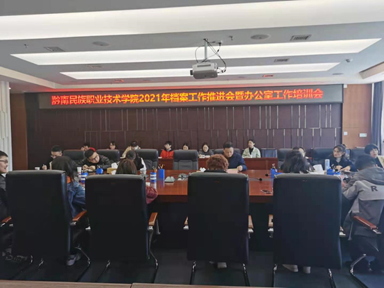 为提高工作质量和效率,3月24日,学院组织召开档案工作推进会暨办公室工作培训会,各系办公室主任、各系各部门收文员、两办全体成员参加会议,行政办公室主任覃国庆主持会议,党委副书记韦永革、党委办公室主任兰文涛出席会议。