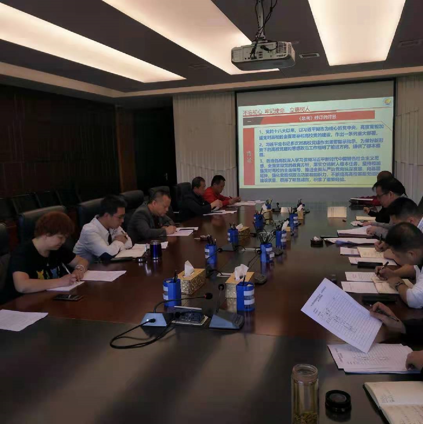 为进一步落实从严治党责任,4月30日上午,院机关第一支部在知行楼第二会议室组织主题党日活动,专题学习修订的《中国共产党普通高等学校基层组织工作条例》(以下简称《条例》,支部书记覃国庆同志给支部全体党员作学习辅导。