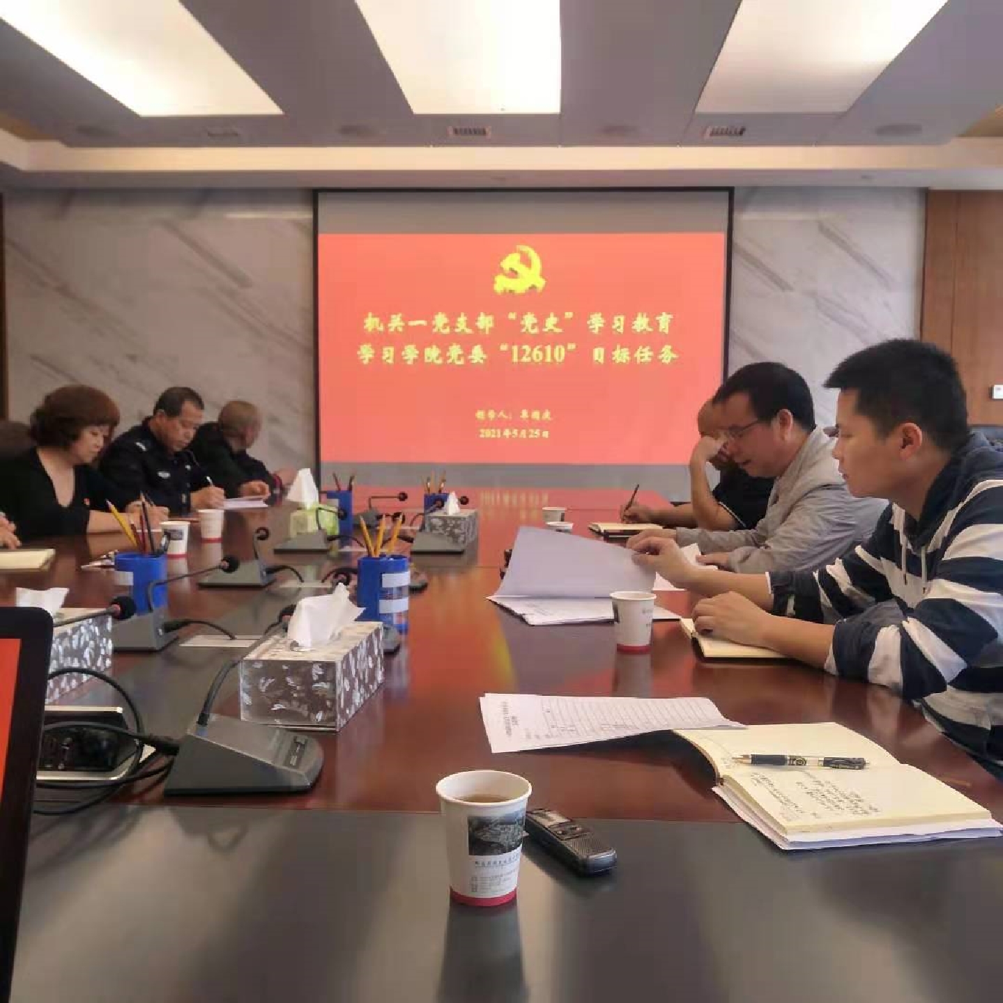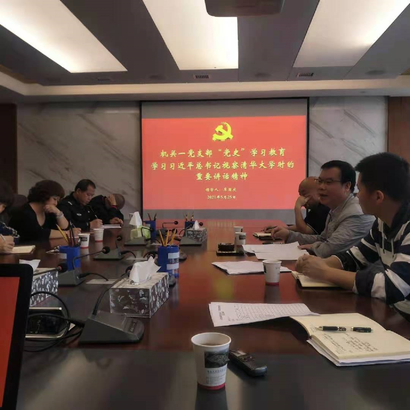 2021年5月25日,院机关第一支部组织全体党员同志,在知行楼六楼第一会议室开展党史学习教育,专题学习习近平总书记在清华大学考察时的重要讲话精神、学院第二次党代会确定的“12610”工作目标任务和学院“33753”的育人体系。