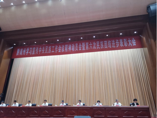 2021 年 9 月 3 日上午,黔南州学习宣传中央民族工作会议精神动员会暨第六次民族团结进步表彰大会在都匀召开。我院获“全国民族团结进步示范学校”荣誉称号,党委书记罗俊代表学院接牌。