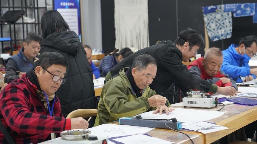 在非遗体验中心,学院建筑系教师向访问团一行详细讲解并示范了蜡染制作过程,激发了访问团教师们对非遗文化产生了浓厚的兴趣,他们亲自体验了蜡染手工制作技艺,感受了多彩贵州的文化魅力,领略了非遗文化的精神内涵和乐趣。
