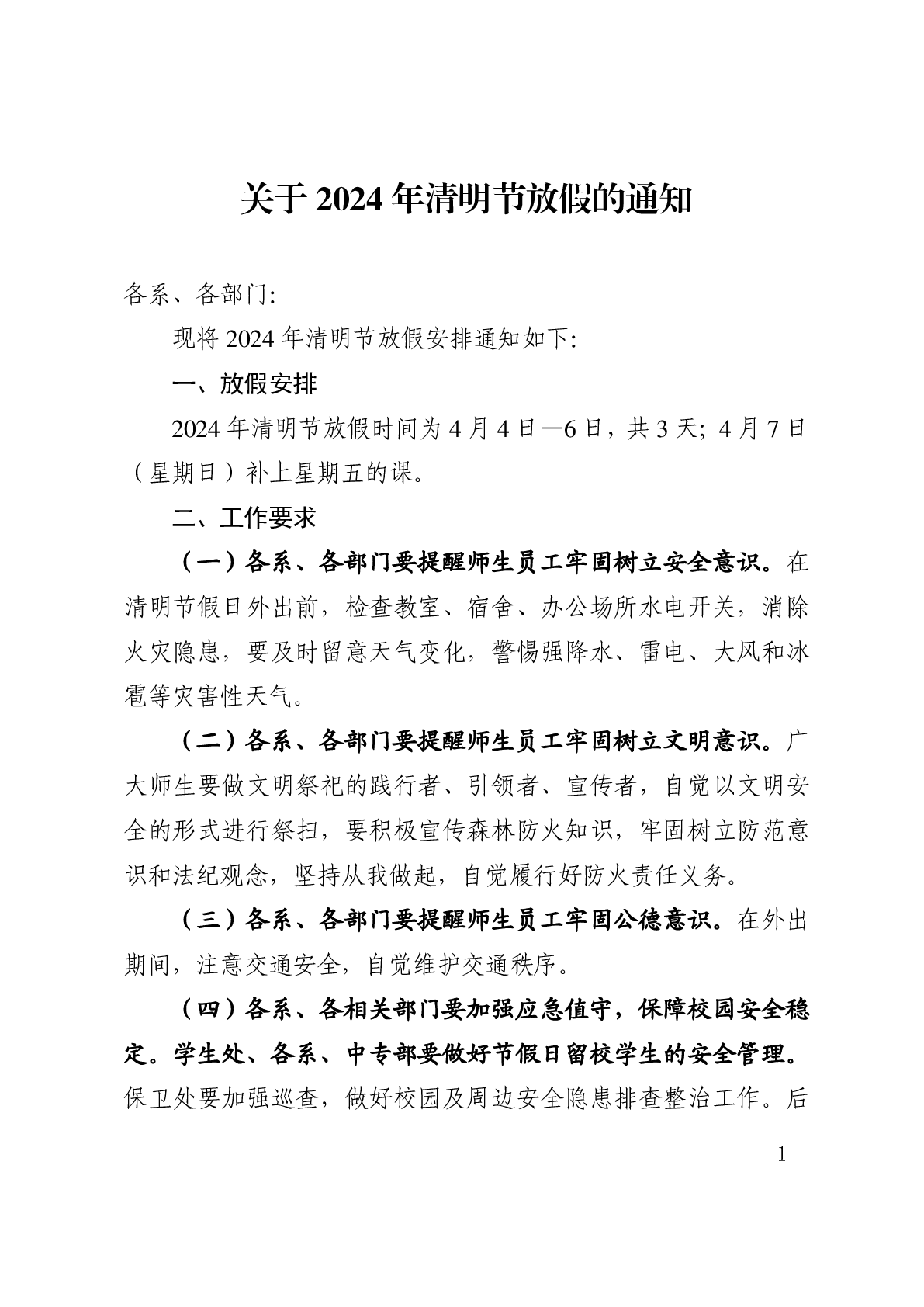 关于2024年清明节放假的通知