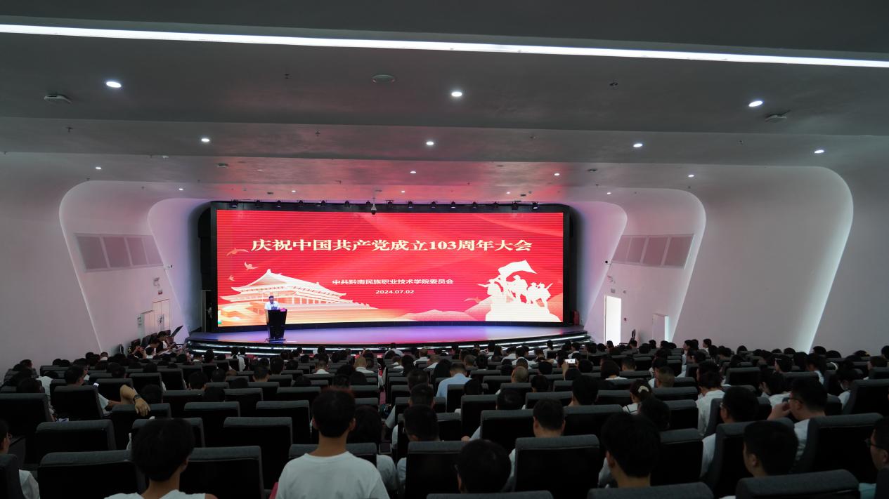 7月2日,学院庆祝中国共产党成立103周年暨表彰大会在思齐厅举行。院党委班子成员、全体教职工党员、学生党员、离退休党员代表、入党积极分子出席大会。会议由党委副书记钟少兰主持。