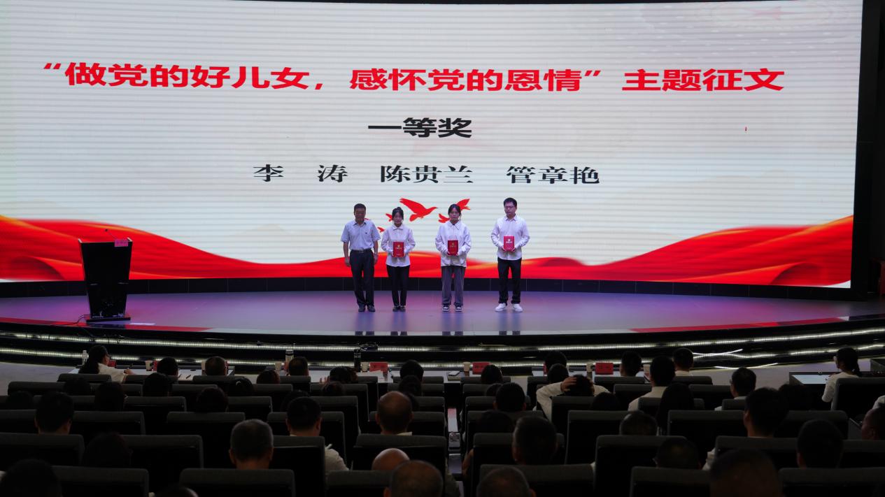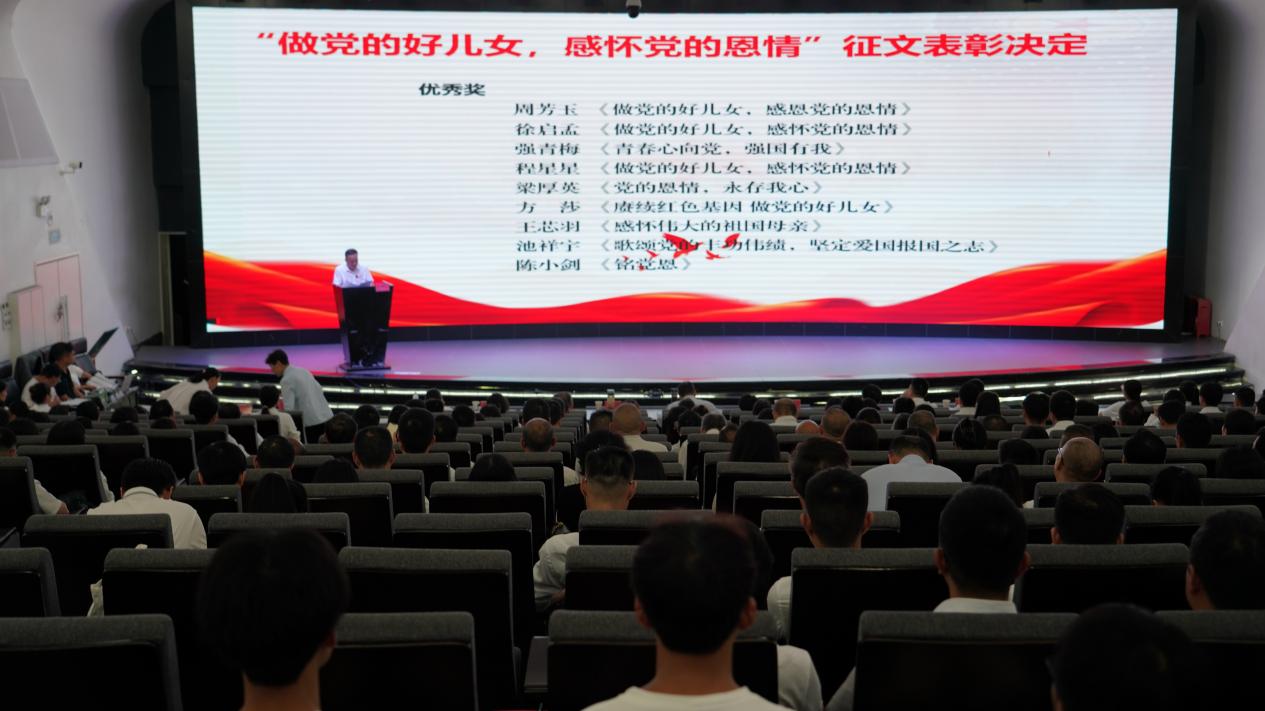 在大会上,韦永革副书记宣读了“做党的好儿女,感怀党点恩情”征文获奖名单,各院领导分别为获奖人员颁奖。