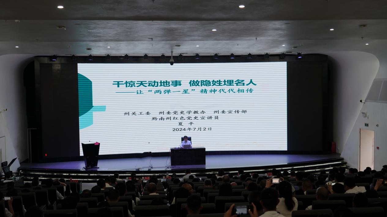 会上,学院邀请了黔南州州关工委副主任、州委讲师团原团长夏平,开展了以“干惊天动地事 做隐性埋名人”为主题的讲座,围绕党中央研制“两弹一星”具有的战略意义和“两弹一星”精神来讲述。讲座激励着我院党员同志们要坚定理想信念,发扬艰苦奋斗的作风,坚持实事求是的态度,勇于探索创新,依靠人民群众,不断取得新的胜利。