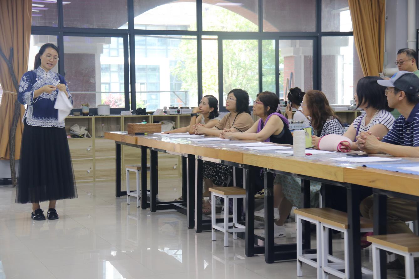 在非遗传承中心,学院建筑系专业教师为访问团一行介绍了扎染这一非物质文化遗产的历史渊源、文化内涵、制作流程及其艺术价值。通过生动的讲解和精美的图片展示,访问团教师们对扎染这一传统的手工染色技艺产生了浓厚的兴趣。