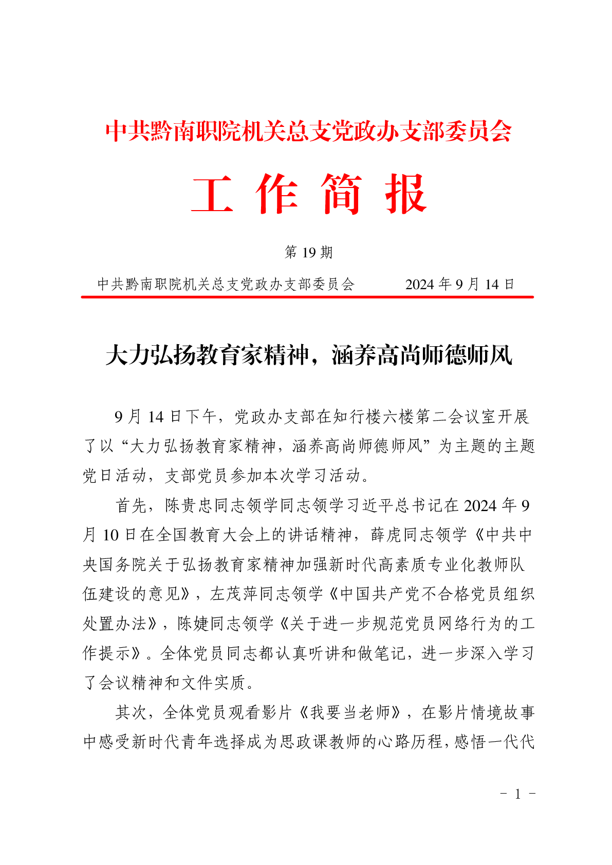 日期:2024-09-17 作者:方大云 来源:中共黔南职院机关总支党政办支部委员会 浏览量:
