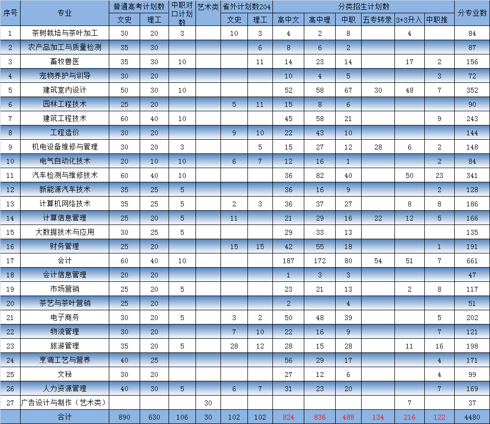 黔南民族职业技术学院2019年高职招生计划(各专业)