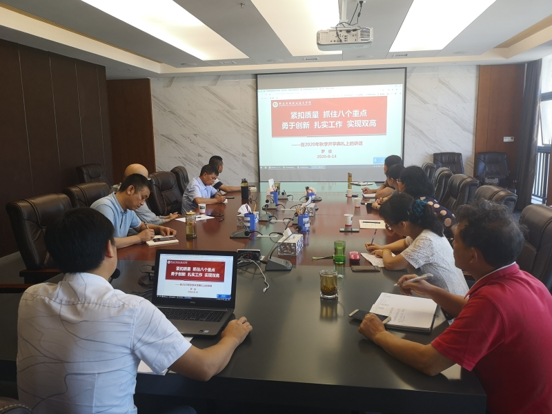 在2020年秋季学期教职工大会上,罗俊书记在《紧扣质量 抓住八个重点 勇于创新 扎实工作 实现双高》讲话中,强调了学期工作重点,重在提质增效。现在学院面临“双高”建设的关键时期,全体教职工要不忘师者本分,严格要求自身,不断学习,敢于担当。高尚处长结合部门工作实际,强调招生就业工作贯穿学院工作始终,要深入领会习近平总书记关于教育体制改革的重要论述,工作中紧紧围绕学院中心工作,将“四位一体”“七个育人模式”“三职教育教学”“思政五分钟”等学院工作重点入脑入心,在招生就业工作中向学生为社会展现学院育人特色,树立学院品牌。
