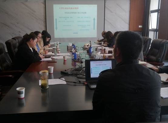 会上,招就处陈再华、蒙明洲老师为各系参会人员讲解了就业工作流程、毕业生生源审核、求职创业补贴申报、校园招聘会补贴申报的时间节点及工作要点,总结了往年此项工作中出现过的问题,要求参与工作人员总结过往经验,严格落实责任,做到用心、细心,确保就业系统上报数据真实准确,使国家扶贫政策落实到所有贫困家庭学生。
