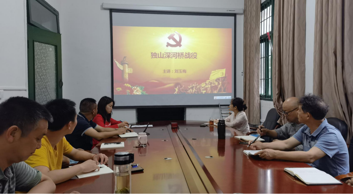 6月21日上午,招生就业处党史系列学习之七--“独山深河桥战役”讲座在部门会议室举行。独山籍刘玉梅老师带领大家重温“独山深河桥战役”历史,旨在以史为鉴。“独山深河桥战役”是抗日战争的终点,对抗日战争具有重要历史意义。
