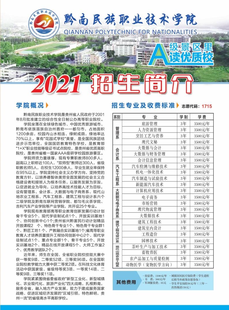 黔南职院2021年普通高考招生简章