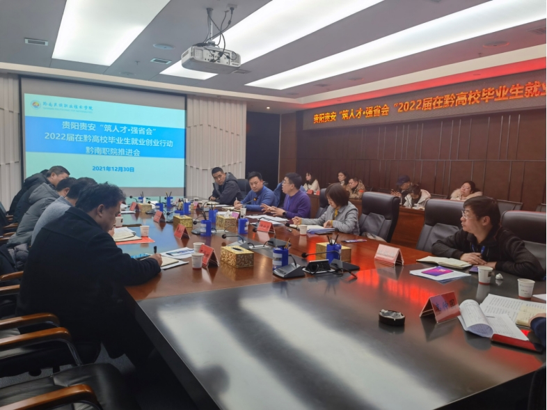 12月30日,我院召开贵阳贵安“筑人才·强省会”2022届在黔高校毕业生就业创业行动专项工作推进会。党委书记罗俊、院长刘荣鹏出席会议,各系各部门相关同志参加会议,会议由钟少兰副院长主持。