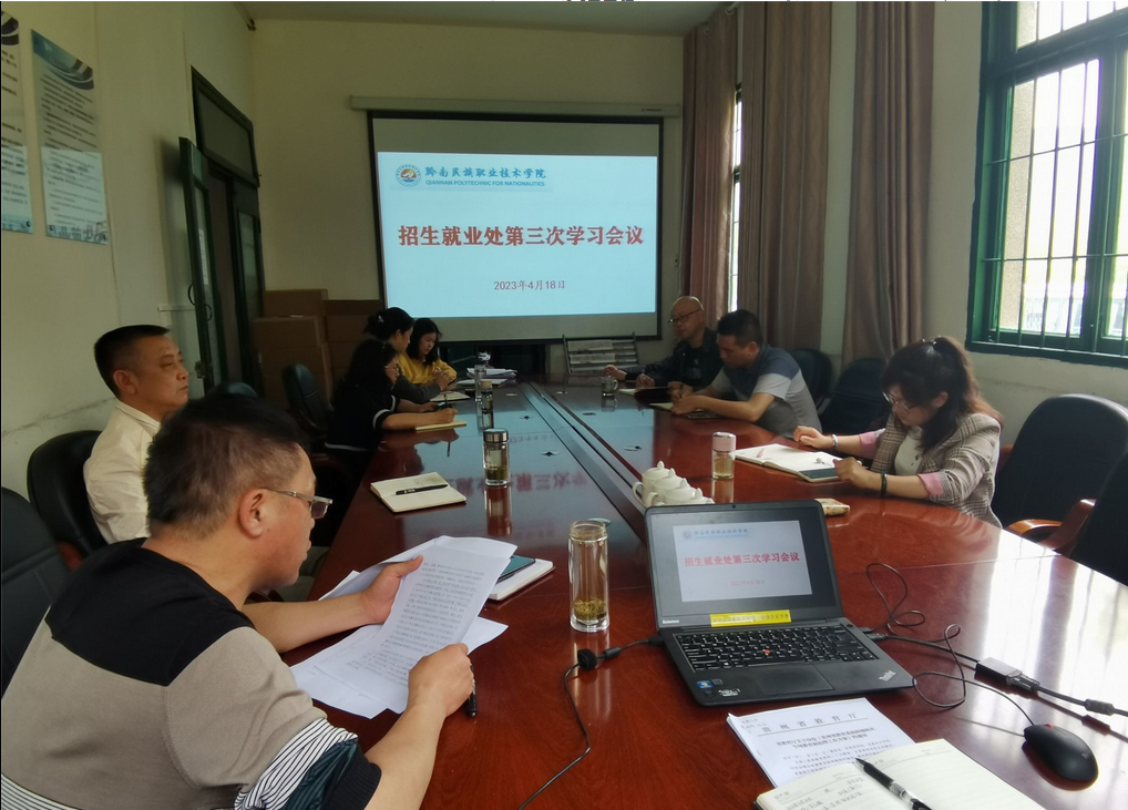 4月18日下午,招生就业处组织全体成员进行第三次集中学习,学习会议由招就处处长吴文娟主持。张国忠、刘玉梅、黄箫、朱仲文四位老师分别领学了《省教育厅省人力资源社会保障厅关于进一步规范职业院校办学行为的通知》、《事业单位工作人员考核规定》、《关于2022年全省教育工作总结和2023年全省教育工作要点的通知》以及《贵州省教育系统师德师风专项教育和治理工作方案》文件精神。