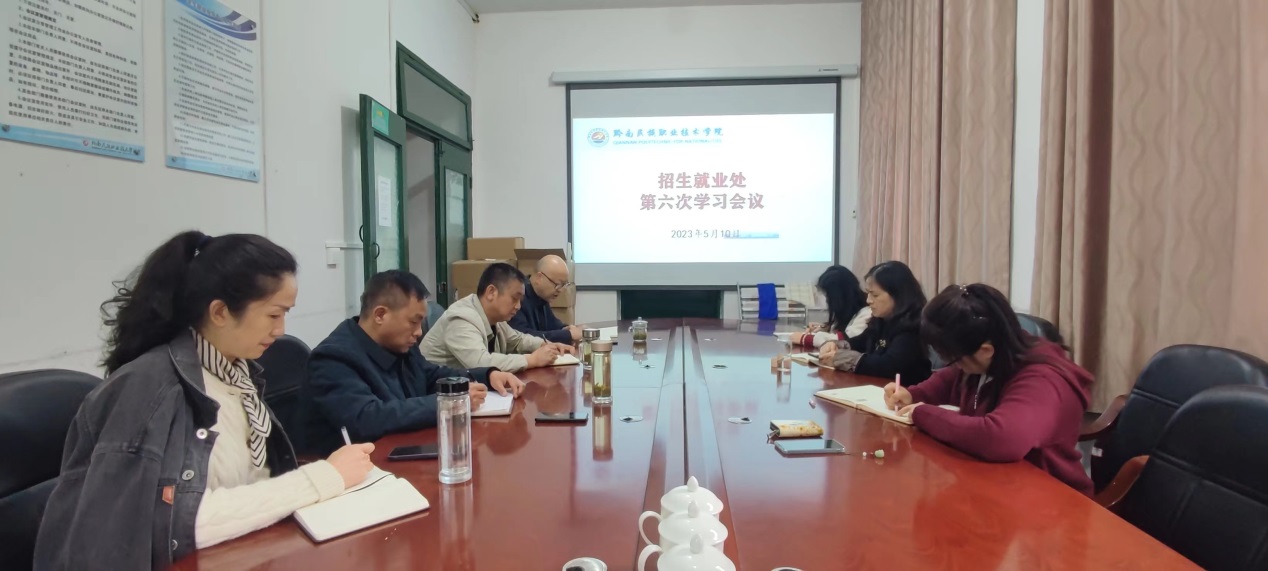 为深入学习贯彻习近平新时代中国特色社会主义思想,开展师德师风廉洁教育,5月10日,招生就业处全体成员在会议室集中学习了《习近平新时代中国特色社会主义思想的世界观和方法论专题摘编》、《廉洁教育——增强组织观念 坚持组织原则》以及黔南民族职业技术学院《开源节流工作方案》。