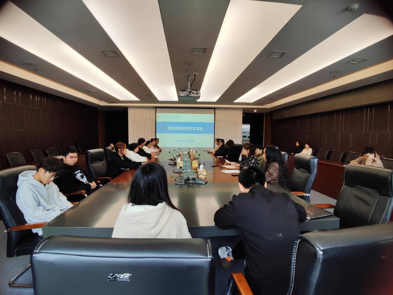 11月22日下午,招生就业处相关人员与各系2023级重点生源学校学生代表在知行楼第二会议室开展交流,会议由吴文娟处长主持。