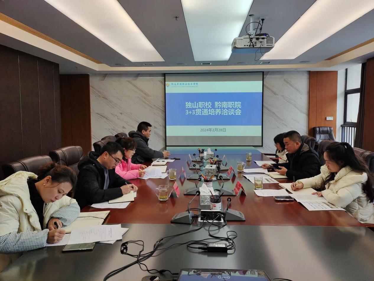 为进一步健全完善中、高职人才贯通培养体系,构建高素质技术技能人才成长立交桥,实现中职教育与高职教育有机衔接,2月28日,黔南职院与独山职校开展“3+3”贯通培养洽谈会。独山职校校长杨允森、副校长熊成红,黔南职院招生就业处处长吴文娟、副处长胡江、教务处副处长陈明怀等同志出席会议。会议由黔南职院招就处处长吴文娟主持。