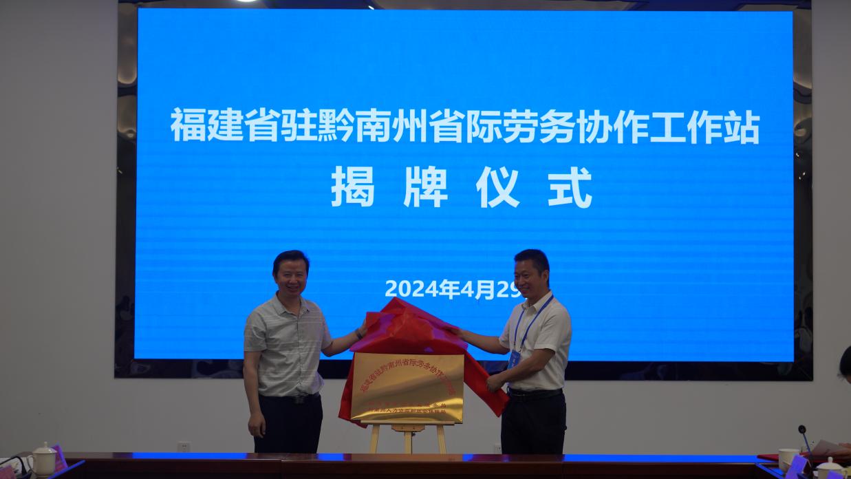 会上,黔南州与厦门市、惠水县与罗源县、瓮安县与惠安县、三都县与永安市签订了市县省际劳务协作协议,举行了福建省驻黔南州省际劳务协作工作站揭牌仪式。