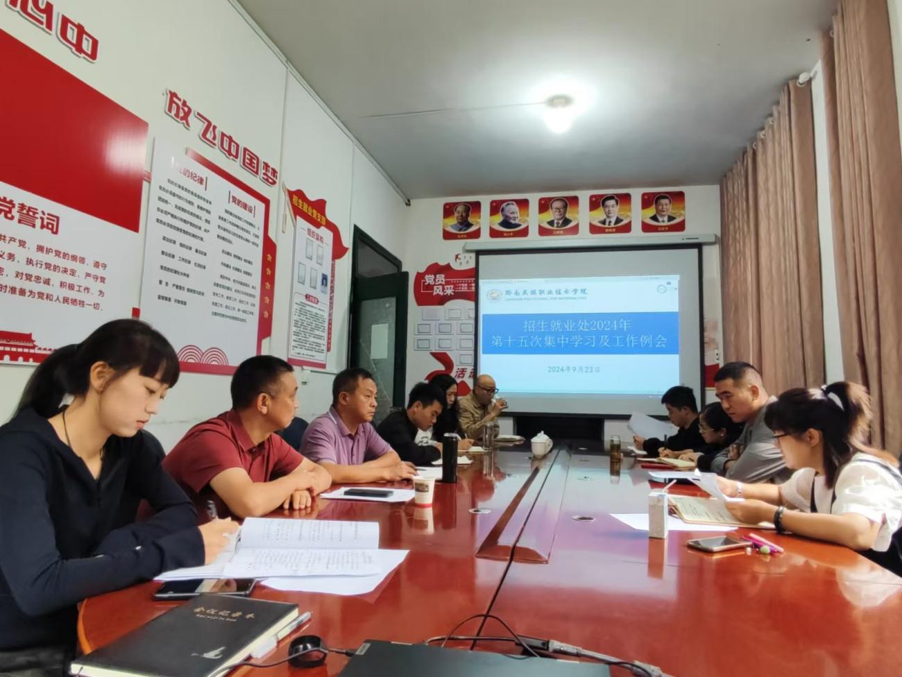 为深入学习贯彻习近平总书记系列重要讲话精神,夯实部门全体人员理论基础,不断提升部门人员的专业素养和业务能力,招生就业处开展了本年度第十五次集中学习,学习由吴文娟同志组织。