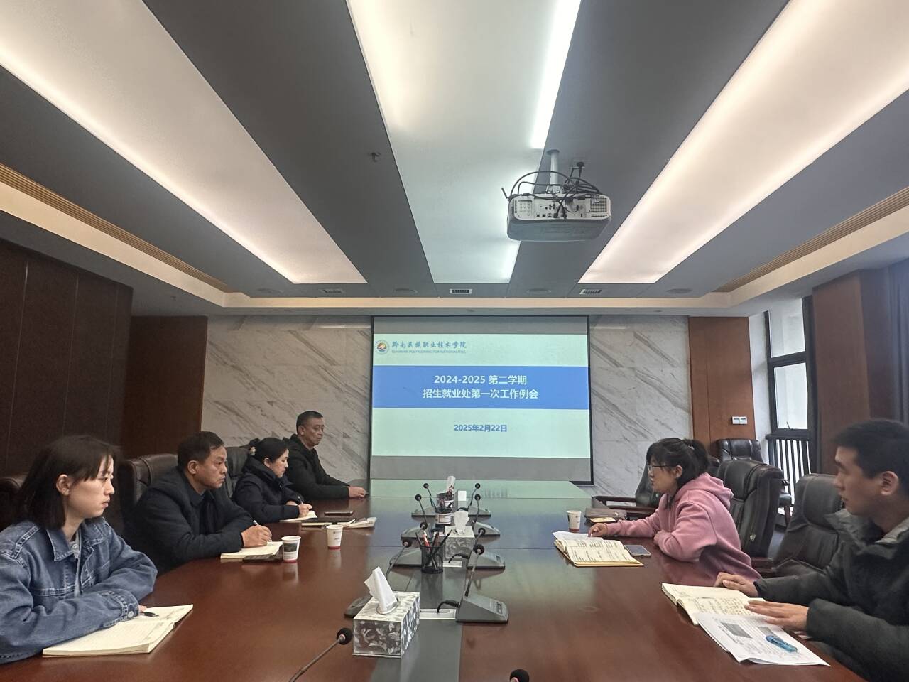 2月22日,招生就业处开展第一次集中学习。会议传达学习了《求是》杂志发表的习近平总书记重要文章《健全全面从严治党体系》,安排部署相关工作。吴文娟主持会议,部门全体成员参加。