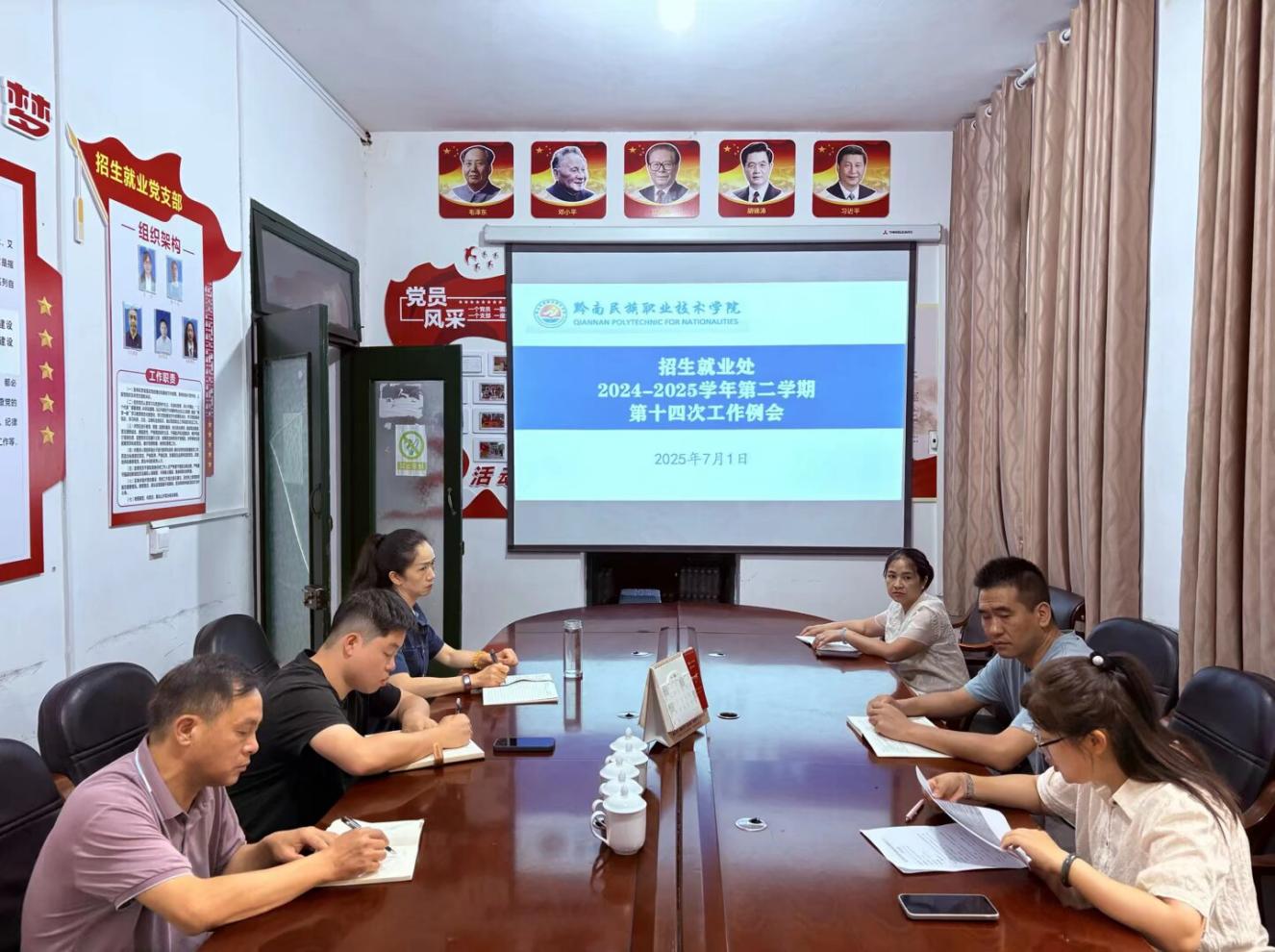 2025年7月1日,招生就业处在部门会议室召开第十四次工作例会。会议传达学习了习近平总书记在纪念陈云同志诞辰120周年座谈会上的重要讲话等文件精神,对违规案例进行通报。随后开展招生业务培训,落实2025年中职招生报名及录取工作安排。